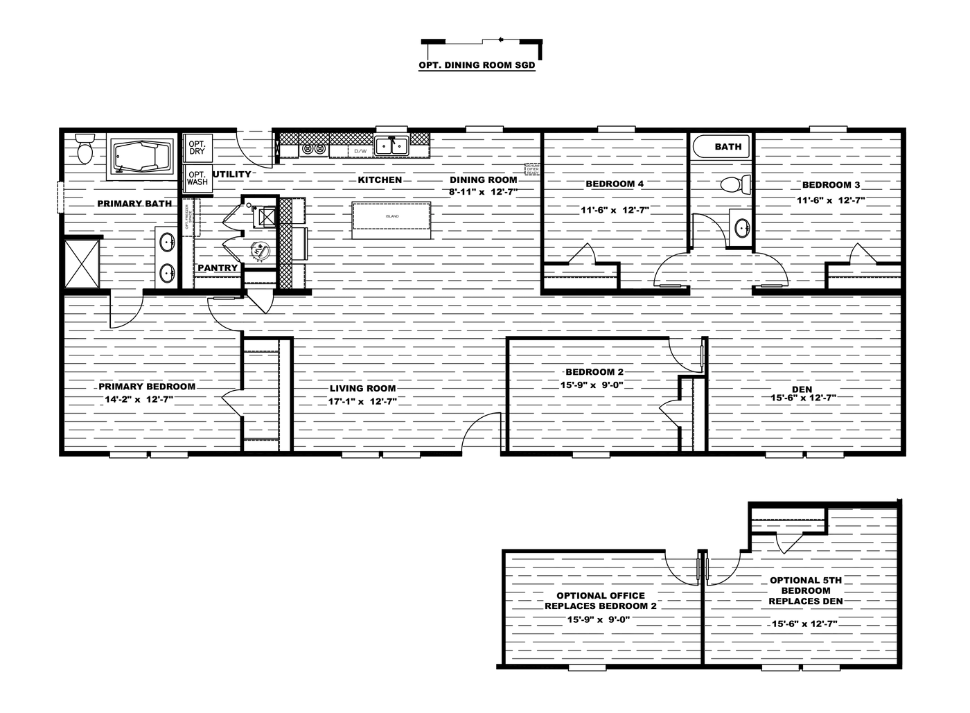 The THE EAGLE 68 Floor Plan. This Manufactured Mobile Home features 4 bedrooms and 2 baths.